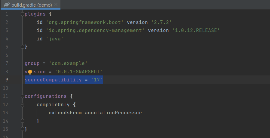 - sourceCompatibility 설정값을 원래 있던 자바 버전의 숫자로 변경
