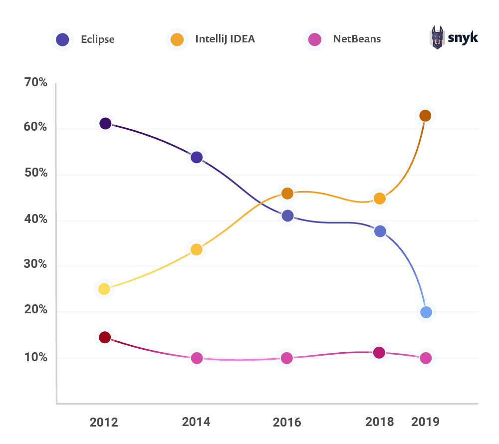 대표적인 JAVA 통합 개발 환경인 Eclipse 보다 여러 면에서 뛰어나다고 평가되며 2020년에는 62%의 사용자가 IntelliJ를 사용할만큼 유명해졌다.