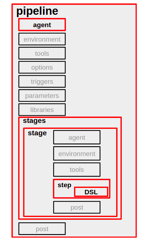 agent는 Script에 필수적인 Parameter로써 pipeline 내부 가장 상단에 기입하면 Global Agent, 즉 Pipeline 전체 절차를 수행하는 Agent로 지정할 수 있으며 stage 내부에 존재할 경우 Stage를 시행할 지역 Agent를 지정하는 것이다.