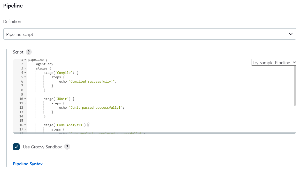 - Definition : Pipeline script 선택