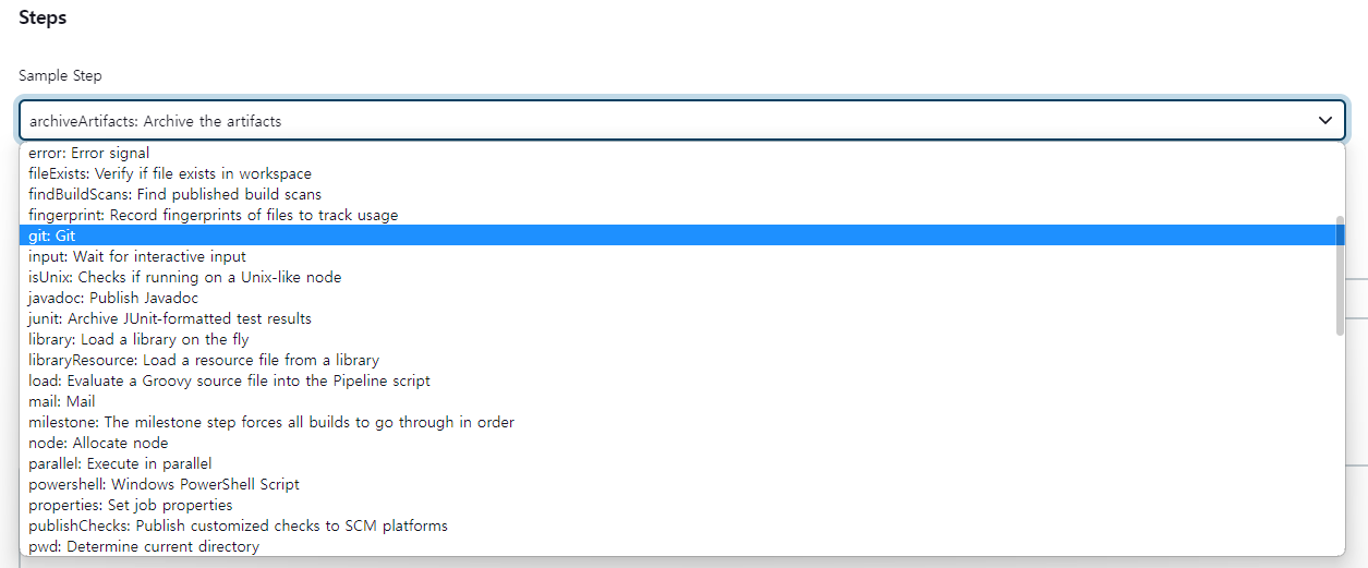 git 뿐만 아닌 다른 여러 기능들에 대한 DSL문 생성을 지원함을 볼 수 있다.