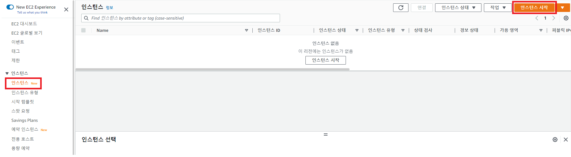 2. 인스턴스 Section > 인스턴스 시작 클릭