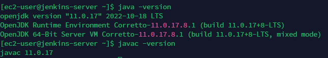 아래와 같이 "aws_corretto~"가 설치되어 있어야 한다.