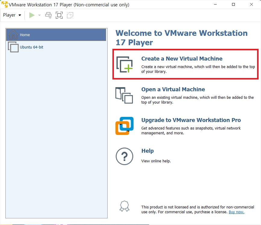 4. VMWare WorkStation에서 Create a New Virtual Machine 클릭
