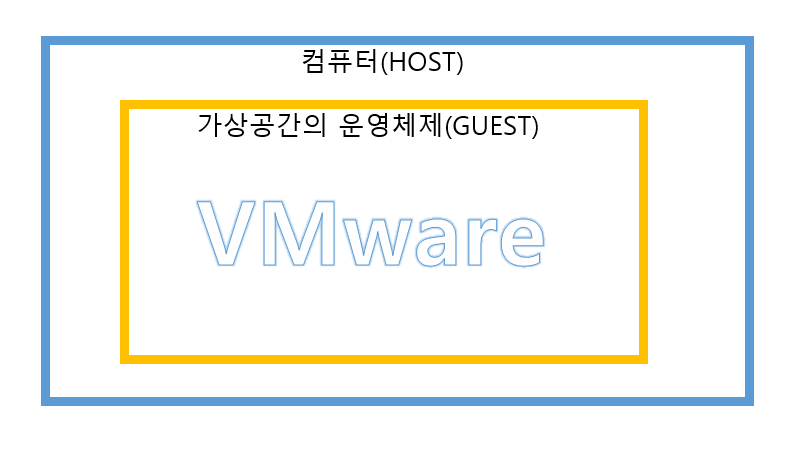 즉, VMWare Workstation은 원래 컴퓨터(ASUS 노트북)의 HW 자원을 일부 가져가 Guest(Linux OS. Virtual Server)에 할당해 주고 이렇게 자원을 할당받은 Virtual Server에 OS 및 디렉터리 구조를 설치하여 Windows라는 Host OS 안에 Linux OS라는 Guest OS를 실행할 수 있게 도와주는 것이다.