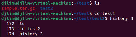 유저가 리눅스에서 활용했던 명령어를 모두 표시하는 명령어이다.
