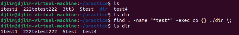 현재 디렉토리 내에서 test 문구를 포함한 파일 찾아 dir로 복사시키기 : find . -name "*test*" -exec cp {} ./dir \;