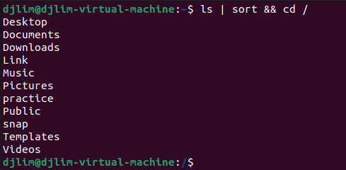 만약 "ls | sort"를 실행시키고 "cd /"를 연이어 실행시키고 싶다면 아래와 같이 사용해야 한다.