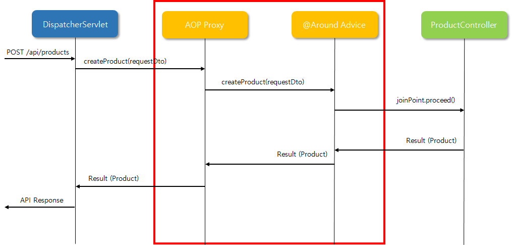 이전 AOP에서 설명했던 시퀀스 다이어그램을 다시 살펴보자