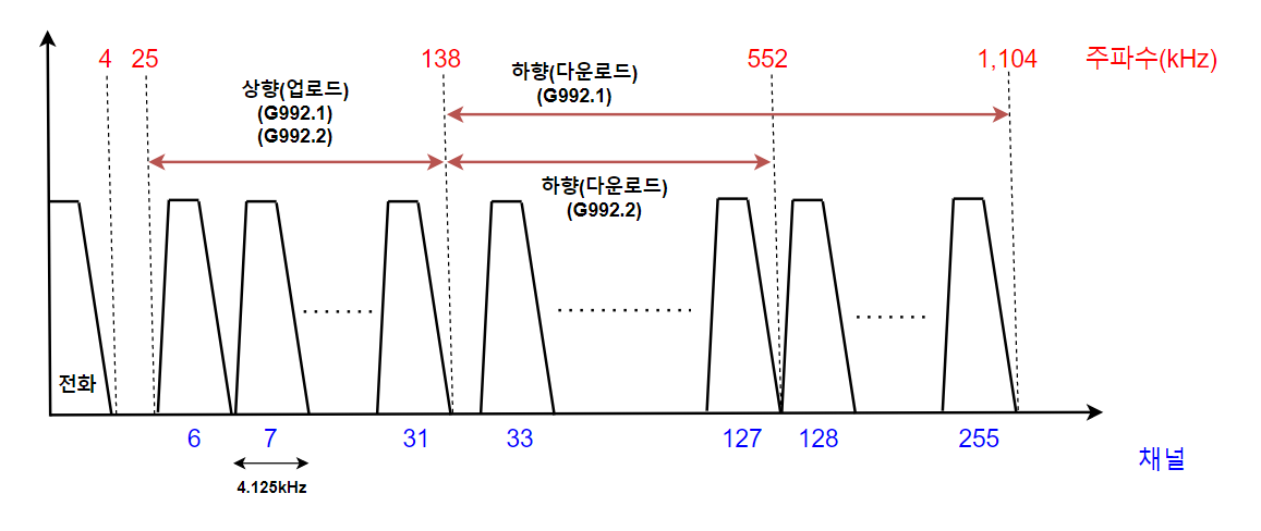 ADSL은 전화 회선을 사용하는 통신 기술로써 전화 회선을 통해 들어오는 신호에는 전화의 음성 신호와 ADSL 신호가 혼합되어 있는 상태이다.