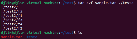 1. tar cvf sample.tar ./test2