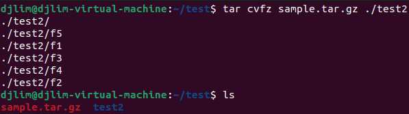 2. tar cvfz sample.tar.gz ./test2