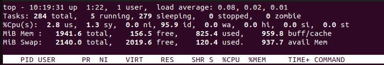 Table 외에도 위의 Tasks, %CPU, MiB Mem, MiB Swap을 통해 실행 중인 프로세스 개수, CPU 사용 현황, 메모리 현황 및 스왑메모리 현황을 파악할 수 있다.