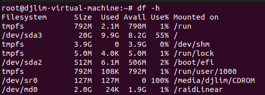 가장 마지막 줄을 보면 /dev/md0라는 파일 시스템이 형성되었음을 알 수 있다.