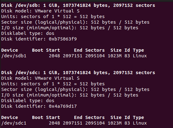 즉, 우리가 원하는대로 여러 개의 하드디스크를 묶어 1개의 RAID로 만들어졌음을 알 수 있다.