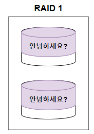 미러링(Mirroring)이라고 부르는 방식으로 데이터 손실을 대비하여 여려 디스크에 동일한 데이터를 저장해 놓는 RAID 방식이다.
