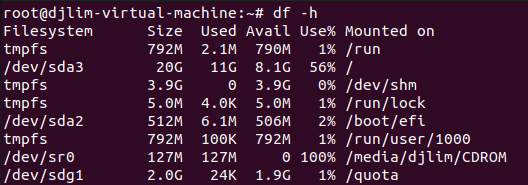 필자는 /dev/sdg1을 /quota에 마운팅 시켰다.