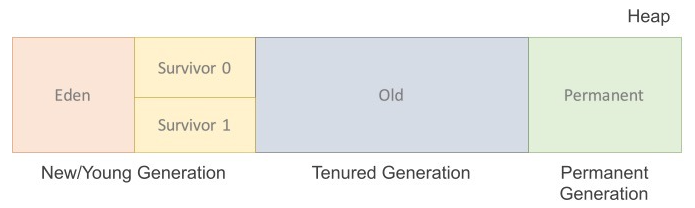 Heap 영역의 구조는 위와 같이 New/Young 영역, Old 영역, Permanent Generation 영역이 존재한다.