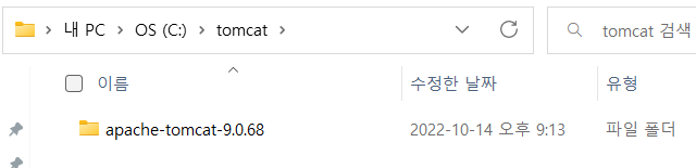 2. 설치한 파일 압축 해제 & C 드라이브에 폴더 생성 & 생성한 폴더에 압축 해제한 Tomcat 파일 옮기