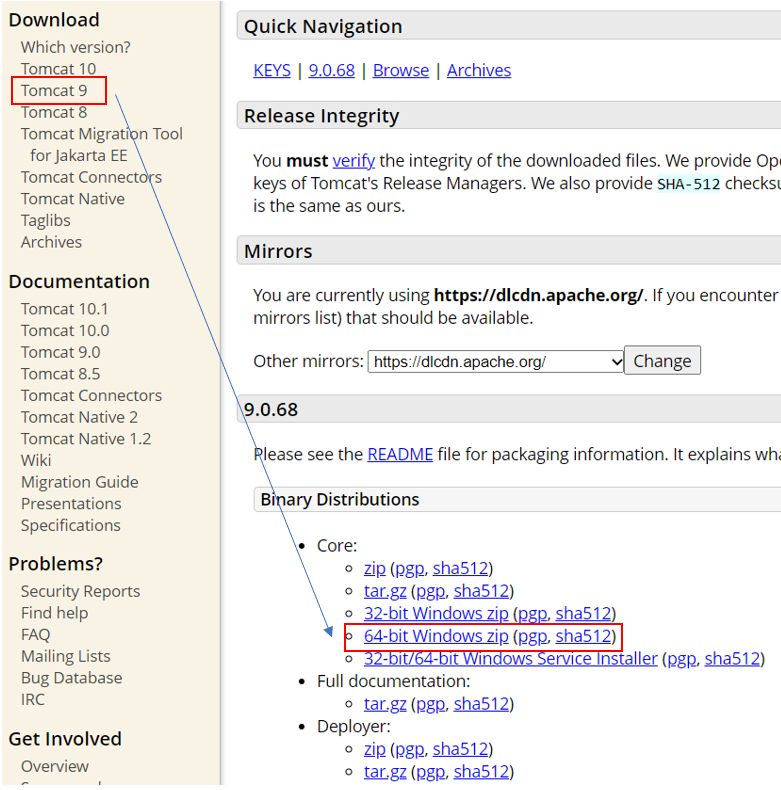 1. https://tomcat.apache.org 접 후 Tomcat 9 버전 설치
