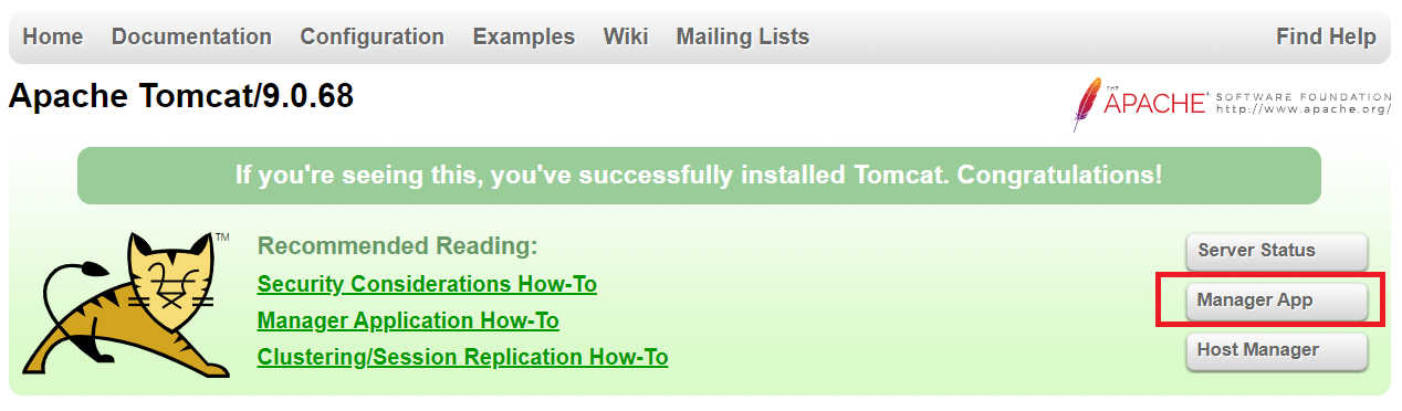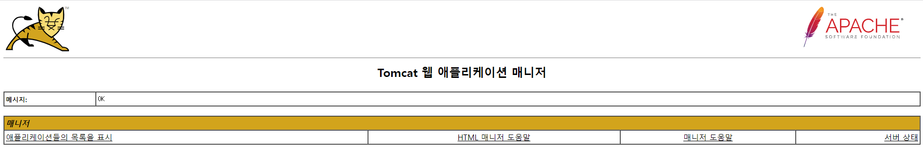 5. Tomcat 재실행 후 Manager App 버튼 클릭