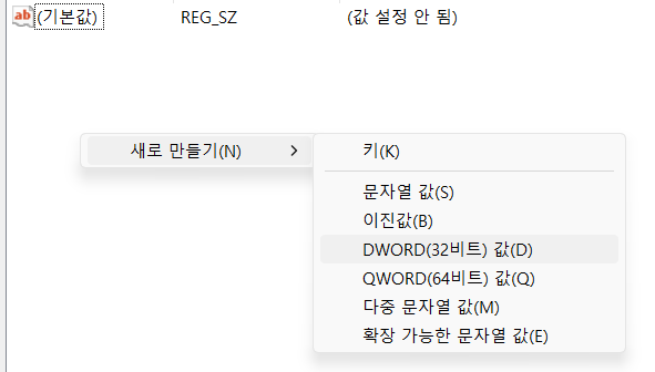3. DWORD(32비트)를 새로 생성 후 이름 지정