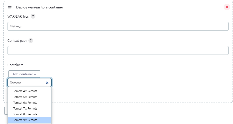 ◎ 빌드 후 조치 추가 버튼 클릭 > Deploy war 검색 & 선택