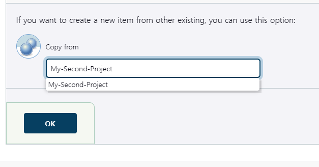 아래에 "Copy from"이라는 Section이 존재하는데, 이전에 생성했던 Item 설정을 그대로 가지고 오고 싶다면 이전 Item의 이름을 입력하면 된다.