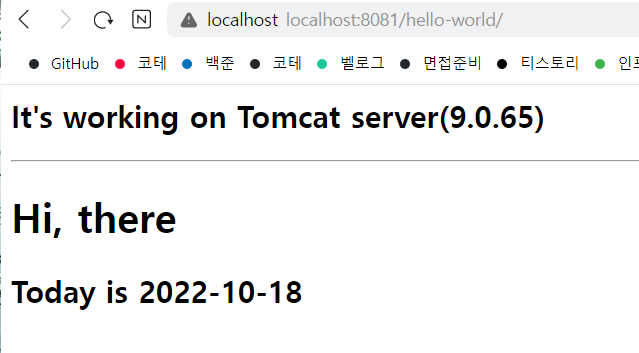 5. localhost:8081/hello-world 접근 후 성공 확인