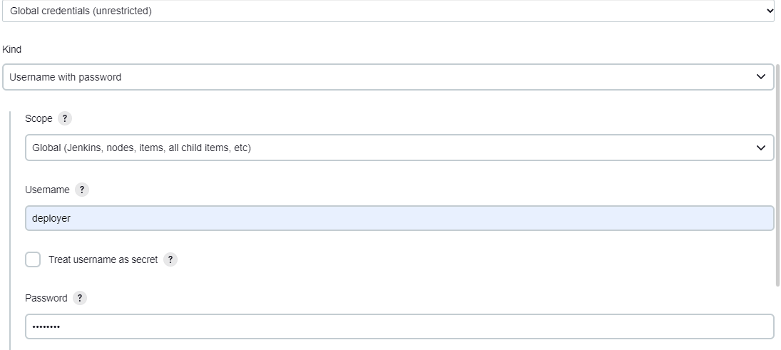 Jenkins는 Script를 통해 필요한 Tomcat Web Server에 war파일을 배포해야 하기 때문에 Plain text interface 권한을 가져야 하며, 이를 위해 우리가 이전에 만들었던 "deployer" 계정에 대한 Credential을 추가할 필요가 있다.