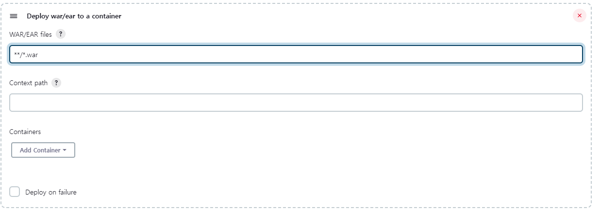 **/*.war는 Jenkins Item Directory의 war 파일을 사용한다는 의미를 가진다.