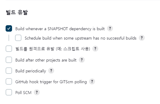 1. 이전 Section에서 생성한 Item 설정 > 빌드 유발 Section