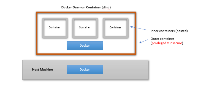 즉, Docker Container가 자신을 실행시키는 Host Machine에 대한 대부분의 권한을 가져야지 DinD 방식을 사용할 수 있게 되는 것이다. 그리고 당연히 이는 큰 보안 위험성을 초래할 수 있을 것이다.