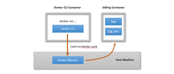 Host machine 위에 존재하는 Sibligng Container에 명령문을 보내고 Sibling Container의 docerkd에서 받은 명령문을 처리함으로써 Sibling Container가 Docker Server의 역할을 하는 것이다.